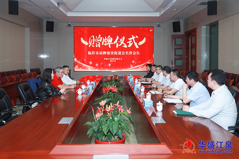 10月16日,臨沂市品牌建設(shè)促進(jìn)會在集團舉行名譽會長單位贈牌儀式并進(jìn)行座談交流。臨沂市政府原副市長劉賢軍,臨沂市品牌建設(shè)促進(jìn)會會長胡守利、秘書長劉亦珈,華盛江泉集團黨委書記、總經(jīng)理高洪路,集團高管張毅、孟濤、付冬明、林洪標(biāo),以及華盛江泉城大酒店、臨沂江泉肉制品有限公司負(fù)責(zé)人出席儀式。
